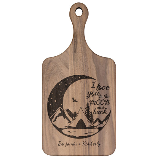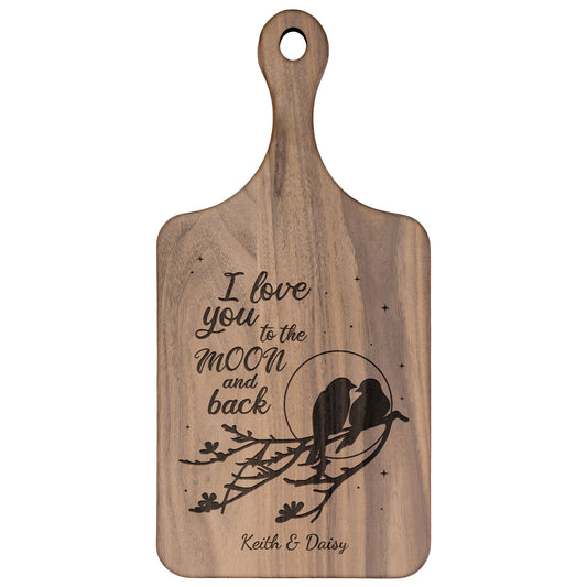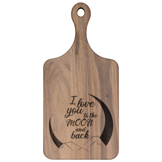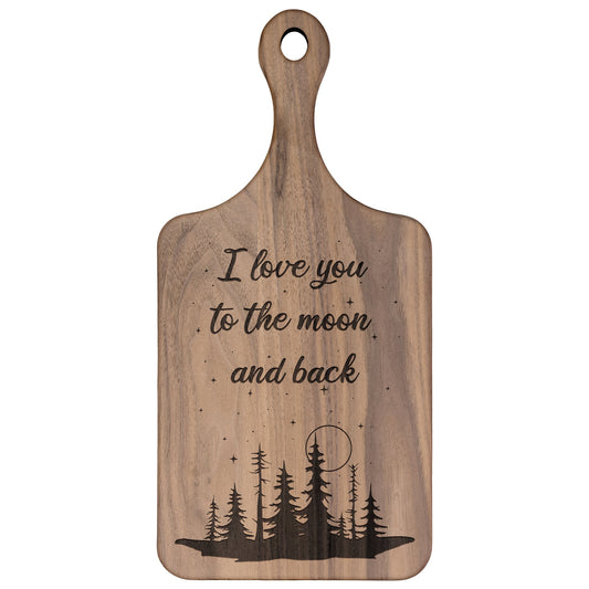 I Love You to the Moon and Back Hardwood Paddle Cutting Board