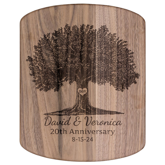 Initialed Heart Anniversary Tree -Hardwood Oval Cutting Board