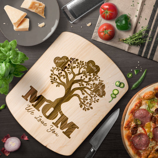 Mom Family Tree Personalized - Hardwood Oval Cutting Board