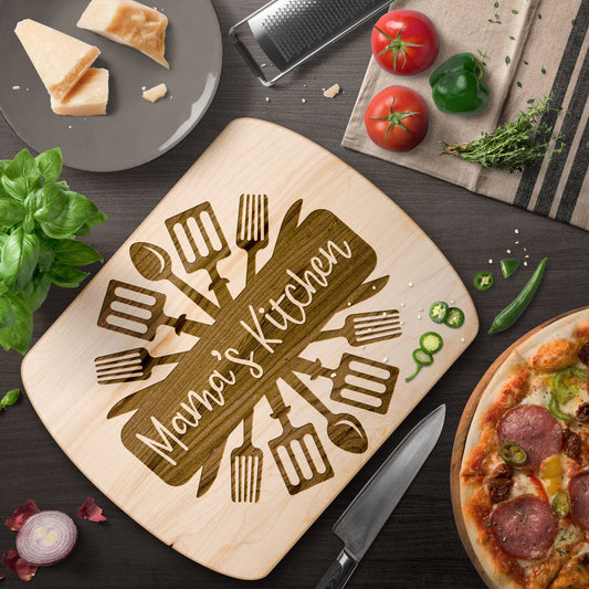 Personalized Mama's Kitchen - Hardwood Oval Cutting Board