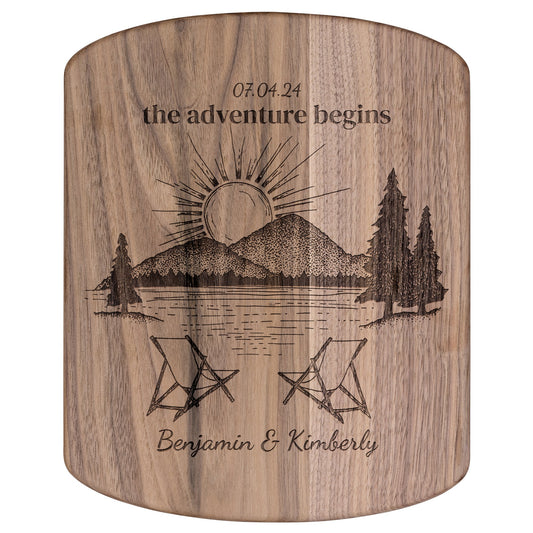 The Adventure Begins Lake Life Personalized Hardwood Cutting Board