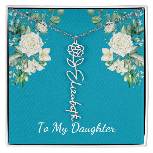 To My Daughter Personalized Birth Flower Necklace - Customize with Birth Month Flower and Name - Teal with White Roses