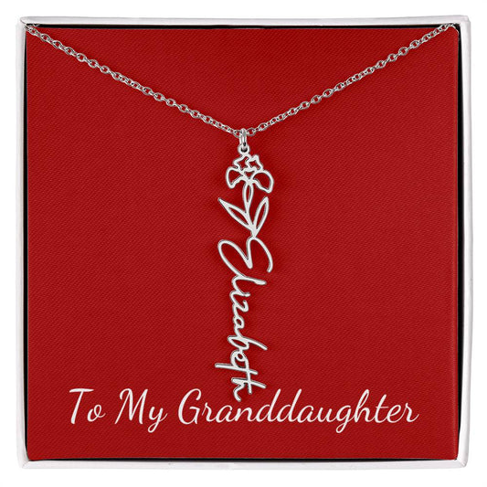 To My Granddaughter Necklace Personalize with Name and Birth Month Flower | Red
