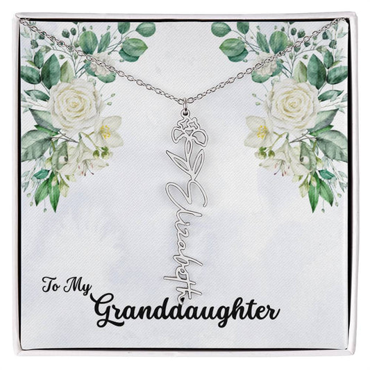 To My Granddaughter Personalized Birth Flower Necklace - Customize with Birth Month Flower and Name -Soft White Roses