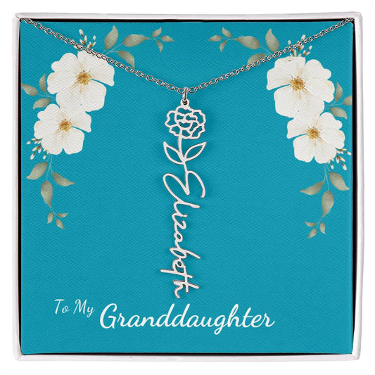 To My Granddaughter Necklace Personalize with Name and Birth Month Flower | Teal