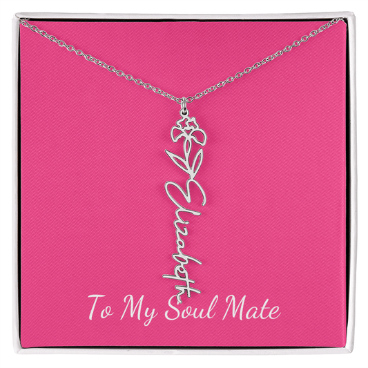 To My Soul Mate Personalized Flower and Name Necklace in Pink