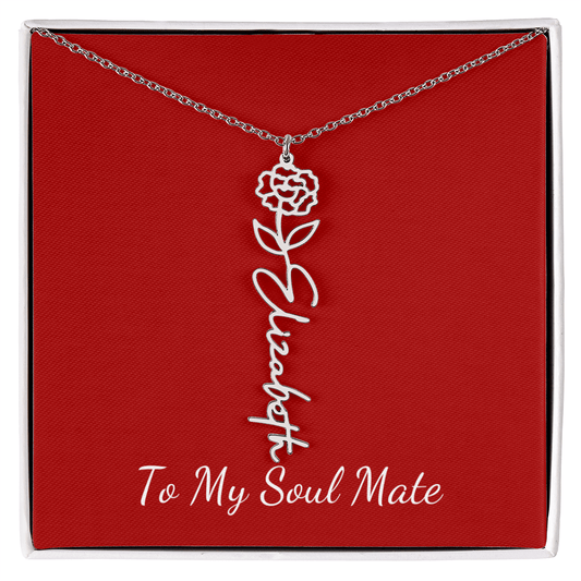 To My Soul Mate | Personalized Flower and Name Necklace Red