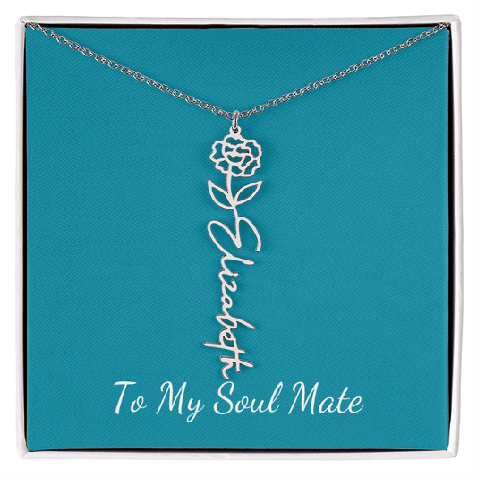 To My Soul Mate | Personalized Flower and Name Necklace Teal