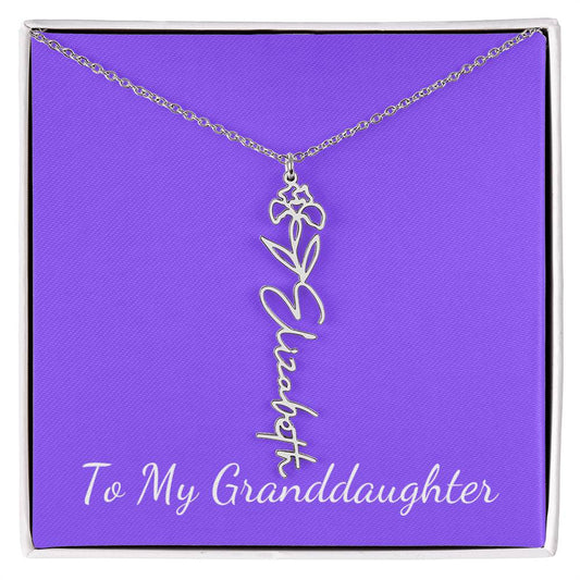 To My Granddaughter Necklace, Personalize with Name and Birth Month Flower, Purple