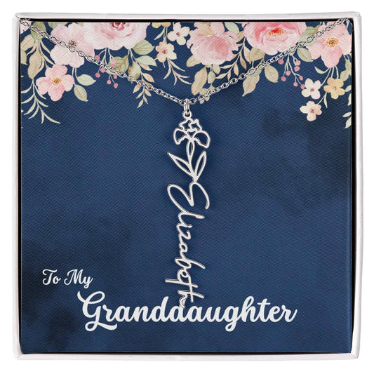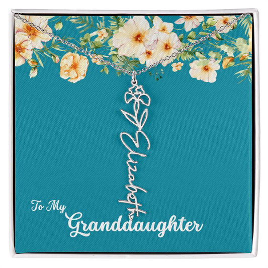 To My Granddaughter Personalized Birth Flower Necklace - Customize with Birth Month Flower and Name - Teal with Flowers