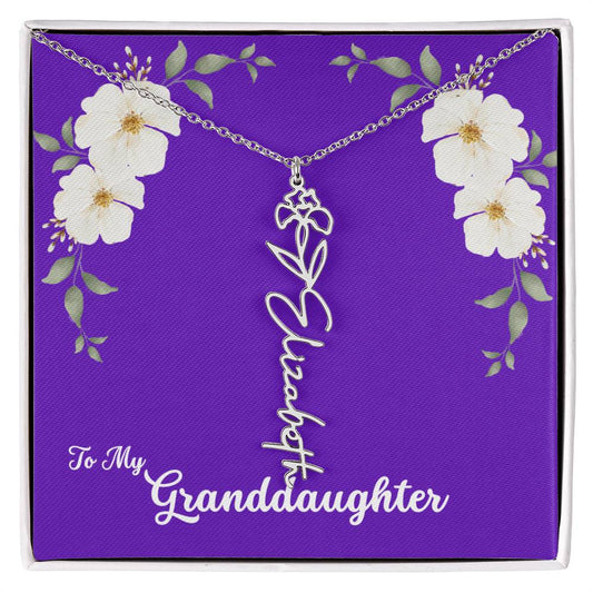 To My Granddaughter Personalized Birth Flower Necklace - Customize with Birth Month Flower and Name - Purple with White Flowers