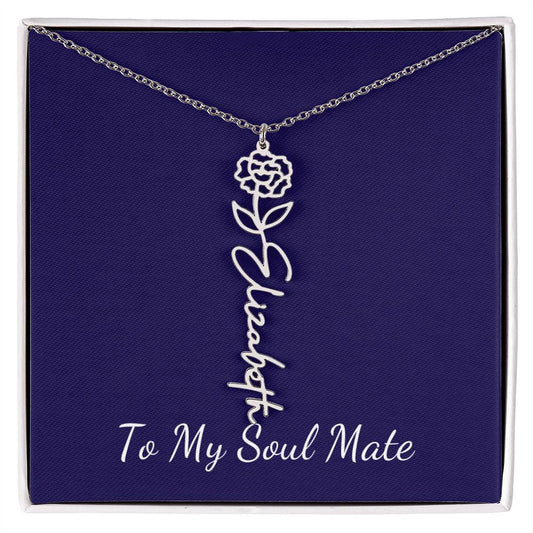 To My Soul Mate Personalized Necklace with Name and Birth Month Flower